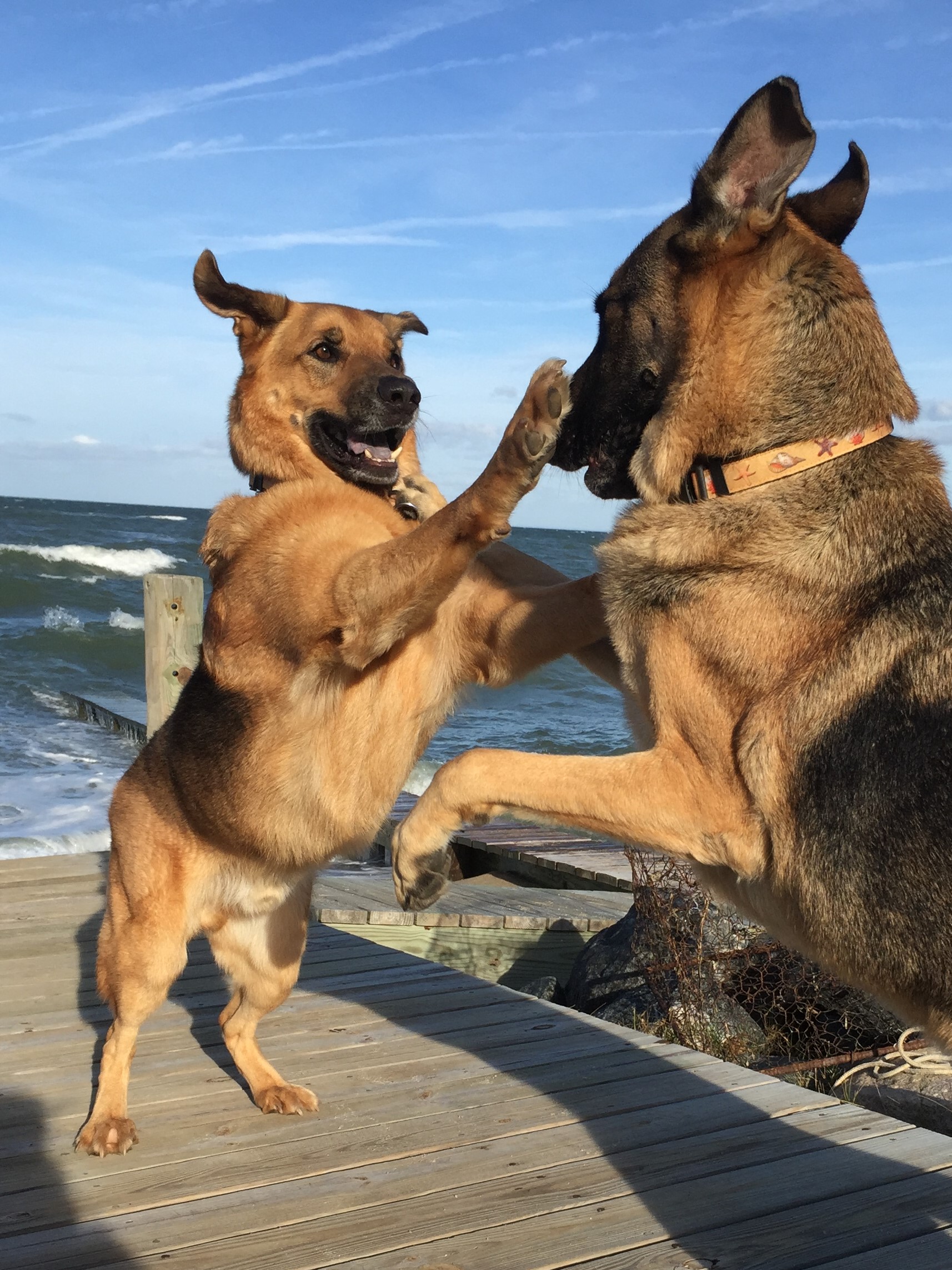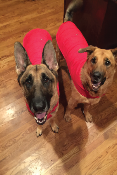 Leo(German Shepherd) and Nephew(a Southeast German Shepherd Rescue) are our two WonderDawgs and office mascots.